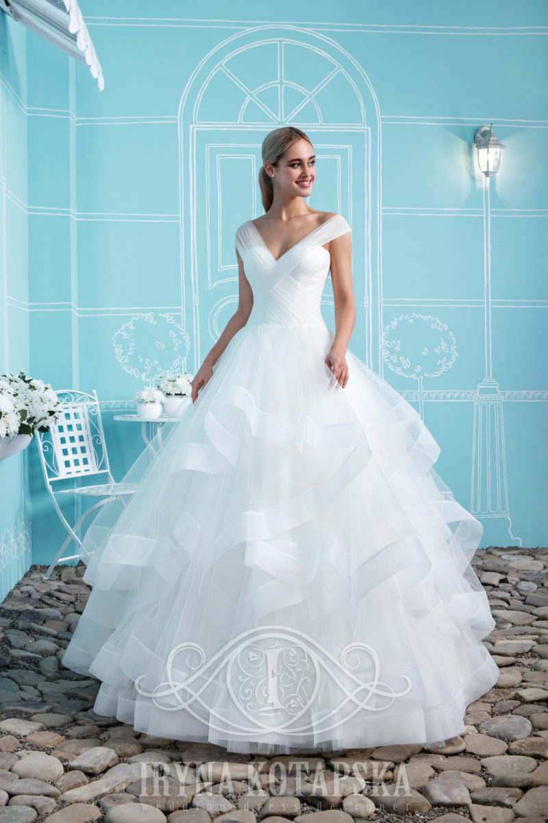En STORARTET brudekjole med snøring på ryggen. Overdelen er dækket af strækbar guipure, med et bælte rundt om taljen. Sjove ærmer supplerer prinsessens eventyrbillede. Kjolen er lavet af tyll. brudekjolen overrasker med sin unikke skønhed. Brudekjolen kan lejes eller ejes.